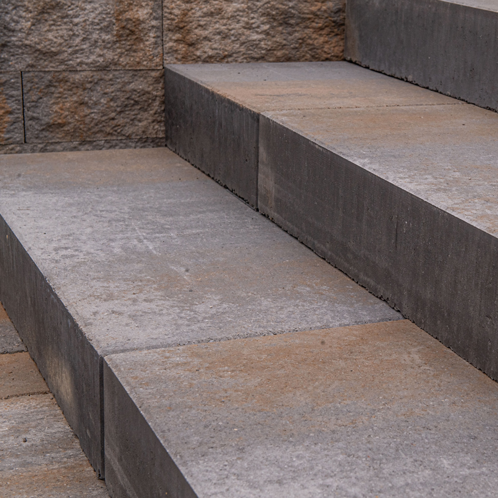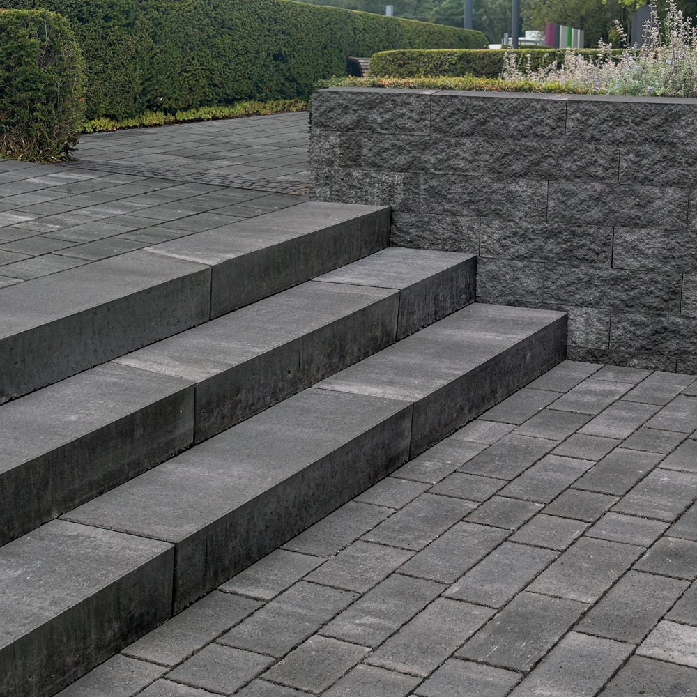 Angenehme Stufen mit 40 cm Tiefe. Die Erweiterung nach oben für Matteo-Pflastersteine und Matteo-Mauersteine.